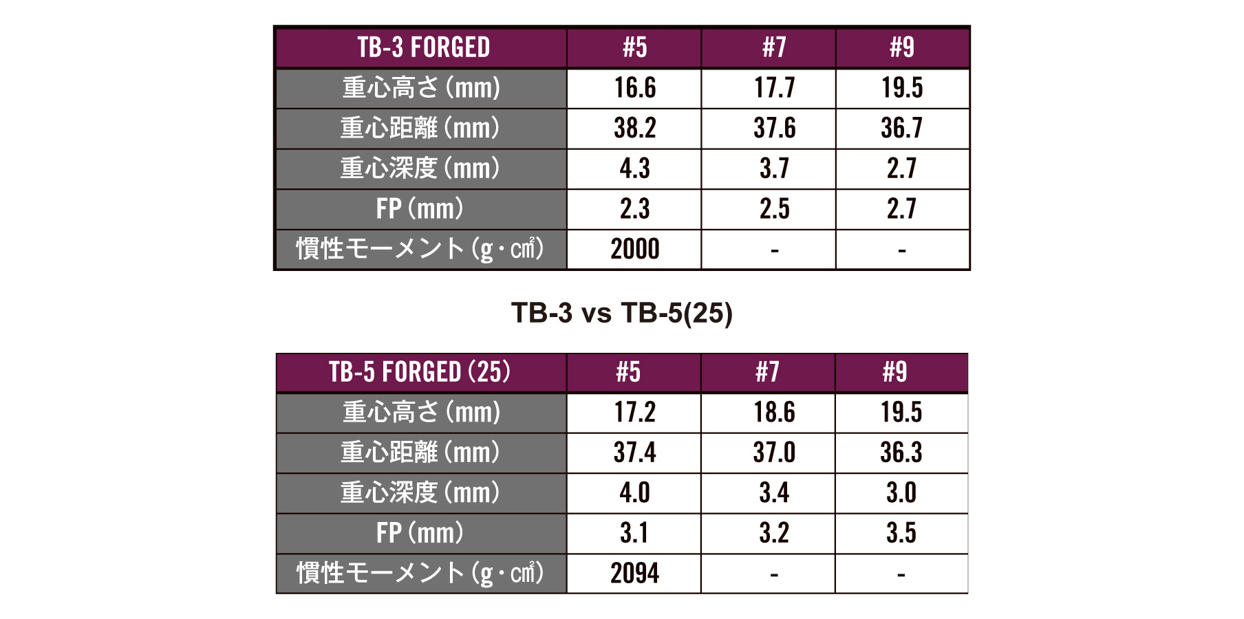 「TB-5」に比べてミドル・ロングアイアンにおいて深重心化。ボールの上がりやすさに貢献します。