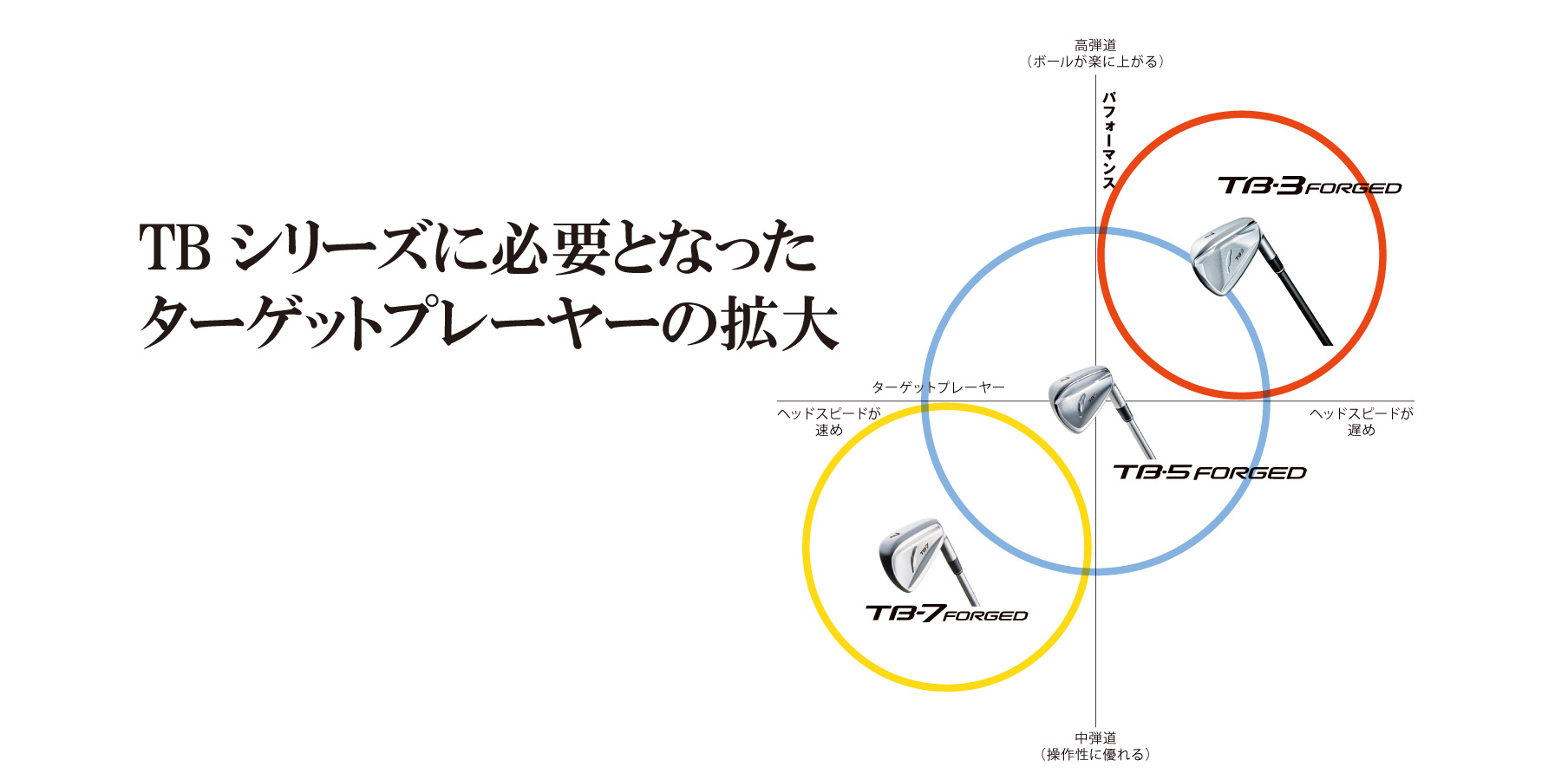 単一素材構造の軟鉄鍛造アイアンとしてやさしさを目指した初代「TB-5 FORGED」(2020 年)は、幅広いゴルファーから多くの支持をいただきました。