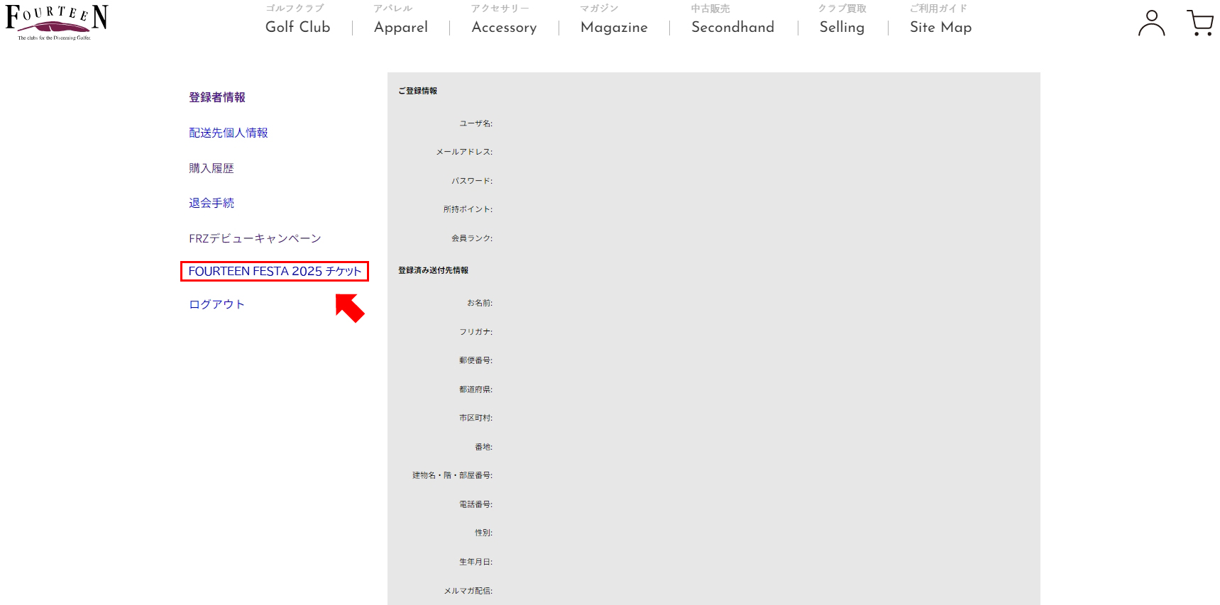 下記画像のように、フォーティーンオンラインストア➡マイページ左側にある