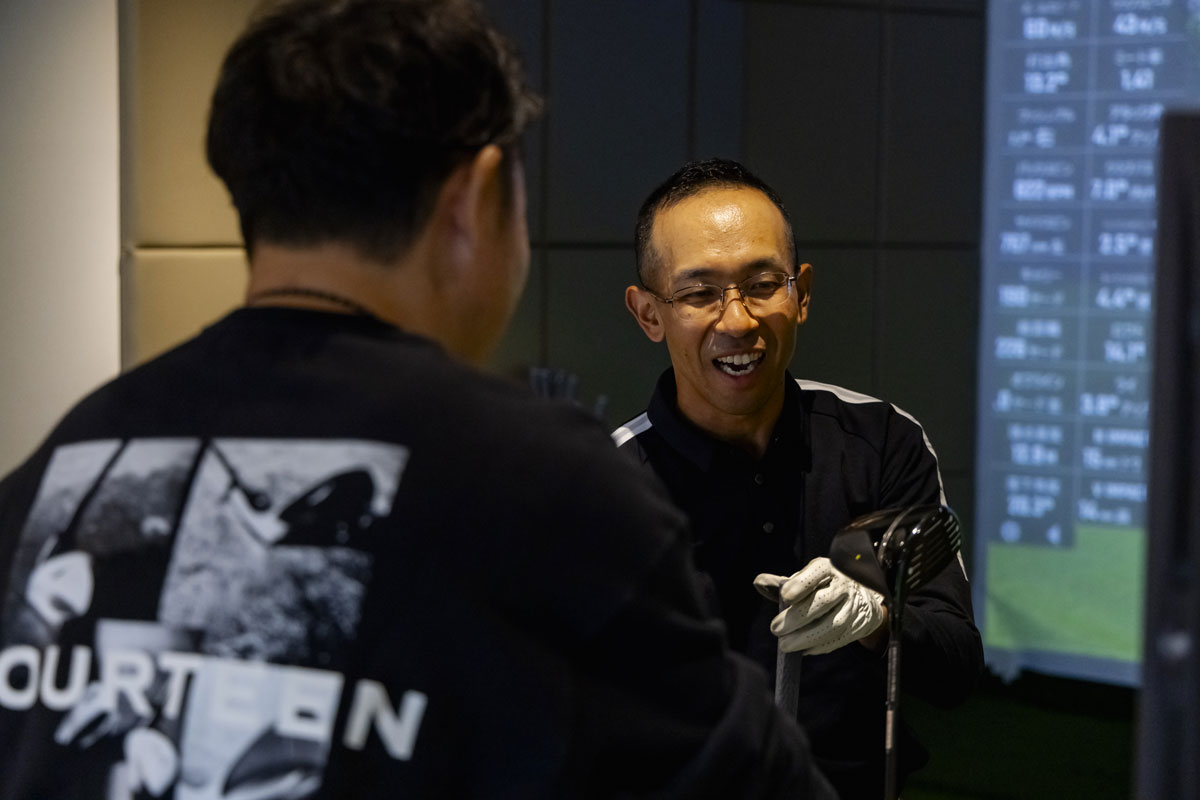 「DX DRIVER」のフィッティングは、4つあるヘッドタイプのコアモデルに位置する002から打ち始める。最もオーソドックスな機能のヘッドを打ち、スイングや弾道の傾向を検証するためだ。フィッティングを担当したのは14field横浜の高橋憲司さん、ティーチングプロの資格を持ち、スイングへの見識がある。