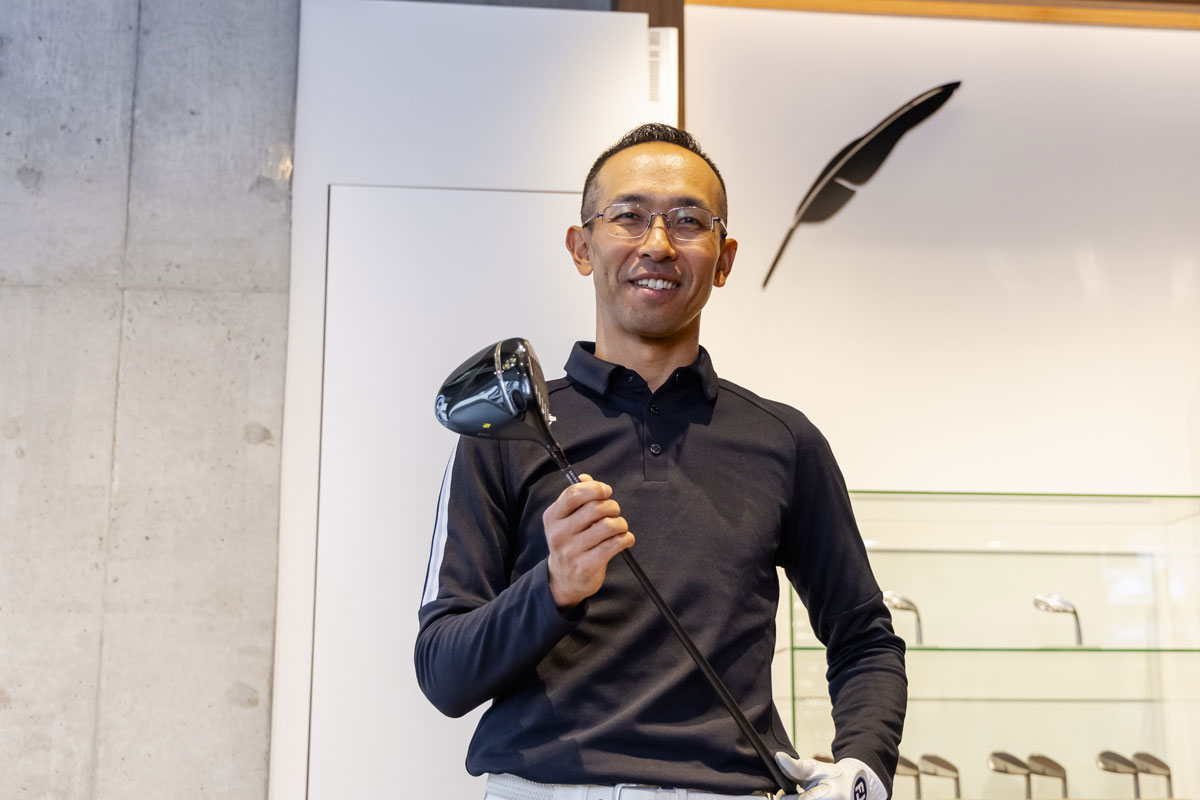 そう語るのは塚田準也さん。平均スコア90、ドライバーの飛距離は230ヤードだという。普段は海外ブランドのロースピンタイプのヘッドを愛用、理想はドローボールを打ちたいという。