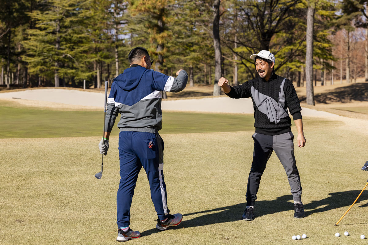 伊澤プロ曰く、セットアップで閉じた状態から開いてインパクトする松山英樹タイプ、開いた状態から閉じてインパクトする石川遼タイプがあり、どちらが打ちやすいか見定めてほしいとアドバイス。参加者は次々にスピンショットに覚醒していきました。