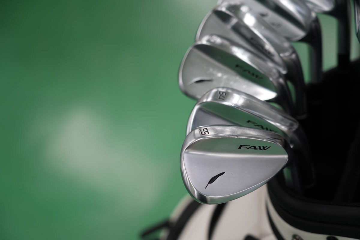 私がセッティングするウェッジは、ゴルフ5様とのコラボモデルである「FA-W」です。このウェッジは、ゴルフ5様の店頭フィッティングにおいて、ハンドファーストに打たれるゴルファーが多いという事例に基づき、しっかりソール効果が発揮できるよう、20度を超えるバウンス角を持った、市場で唯一といえるハイバウンスウェッジです。ライ角も+4°~-2°に対応しており、しっかり自分のインパクトに調角することで、ソールのハイバウンス効果をより素直に発揮できるウェッジです。